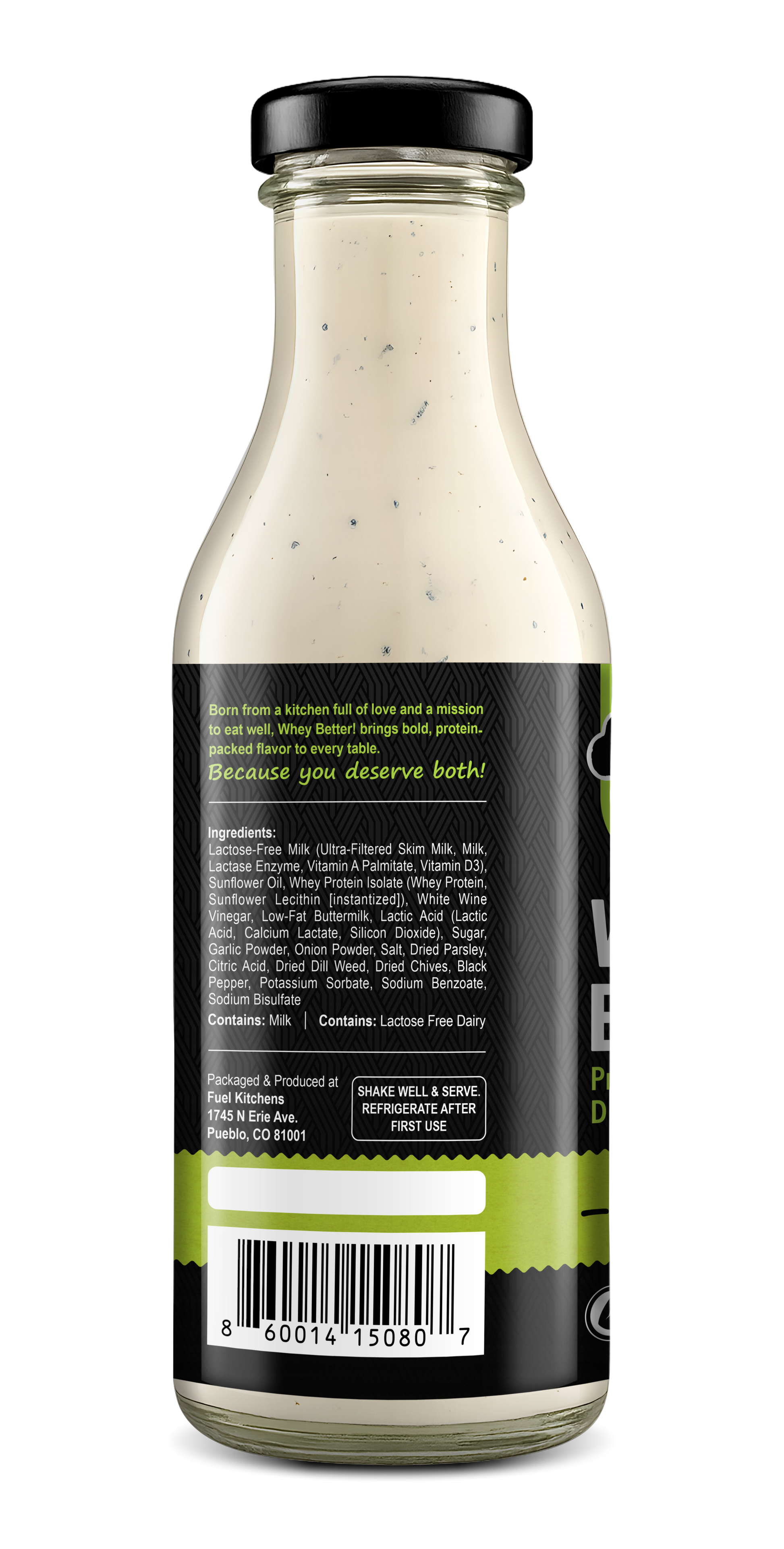 Made with real ingredients you can pronounce—whey protein isolate, sunflower oil, buttermilk, and a tangy twist of herbs—this dressing does more than sit pretty on your plate. It fuels your hustle.